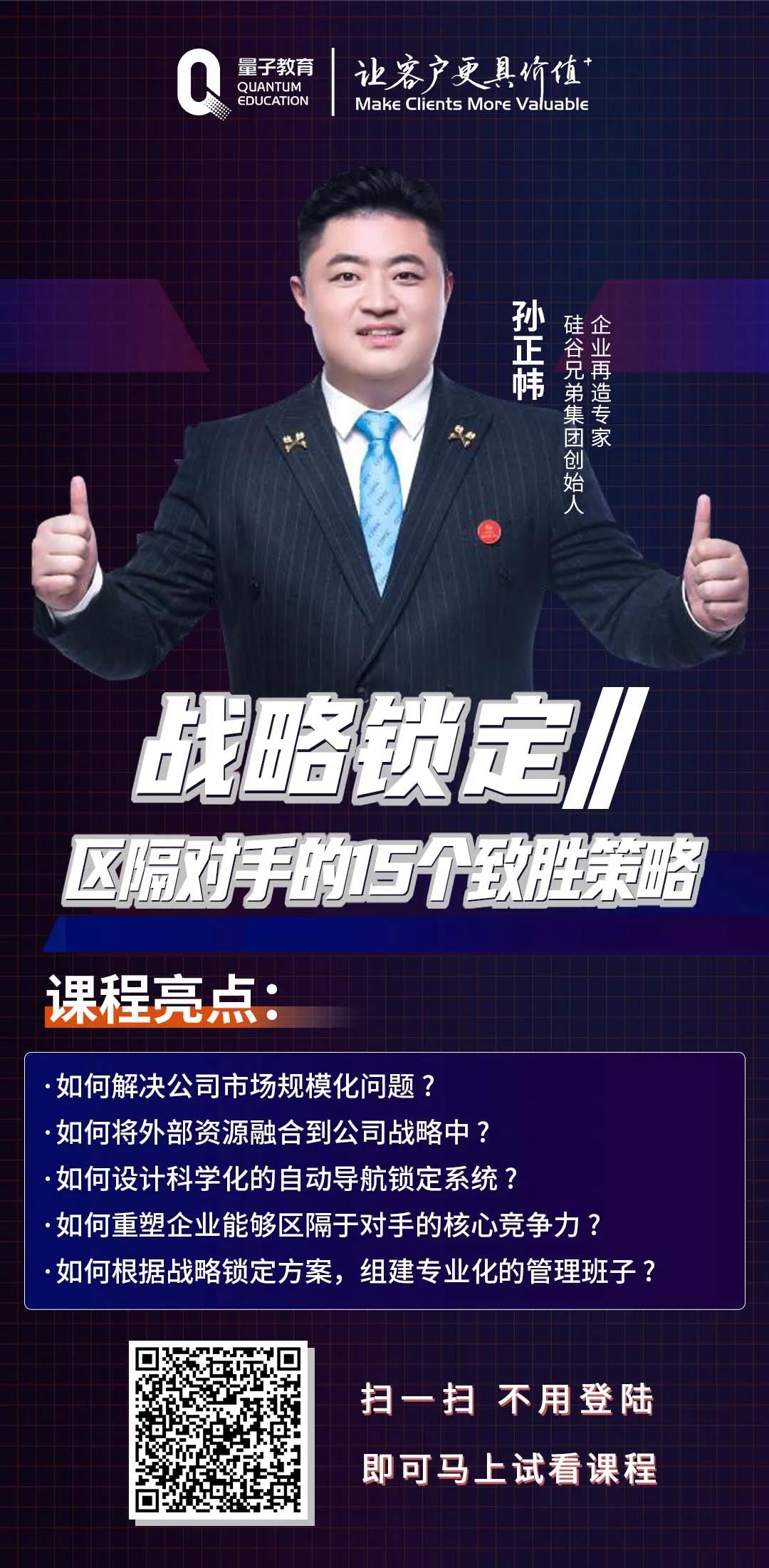 企業(yè)再造專家、硅谷兄弟集團(tuán)創(chuàng)始人孫正幃,結(jié)合國內(nèi)多個(gè)行業(yè)龍頭的破局案例,揭秘企業(yè)面對(duì)戰(zhàn)略、轉(zhuǎn)型問題時(shí)15個(gè)致勝策略,幫助企業(yè)煥新增長,破局重生!