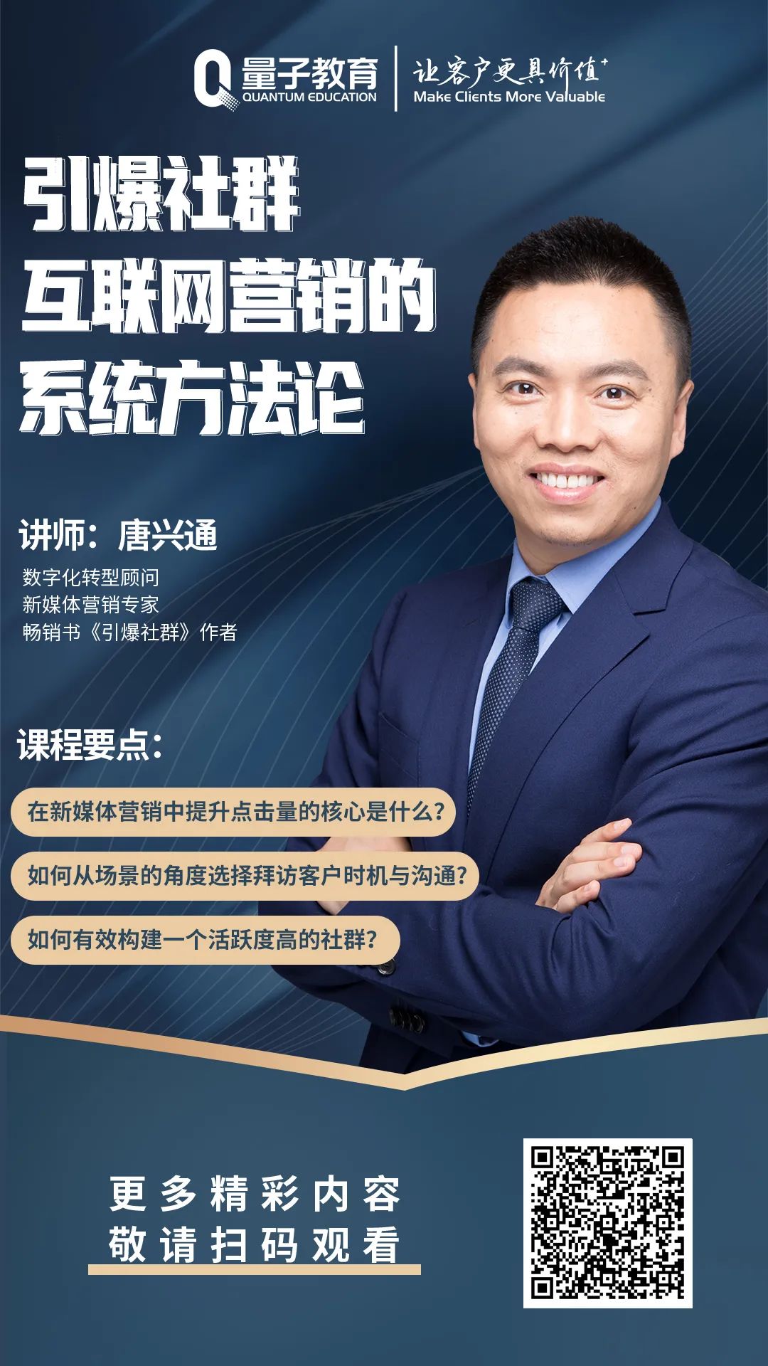 本周為您推薦的是數(shù)字化轉(zhuǎn)型顧問&新媒體營銷專家唐興通老師的《引爆社群:互聯(lián)網(wǎng)營銷的系統(tǒng)方法論》!